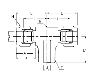 SMBT 1/2 in. Tube Outside Diameter D x 1/2 in. Male National Pipe Taper (MNPT) Thread Male Branch Tee
